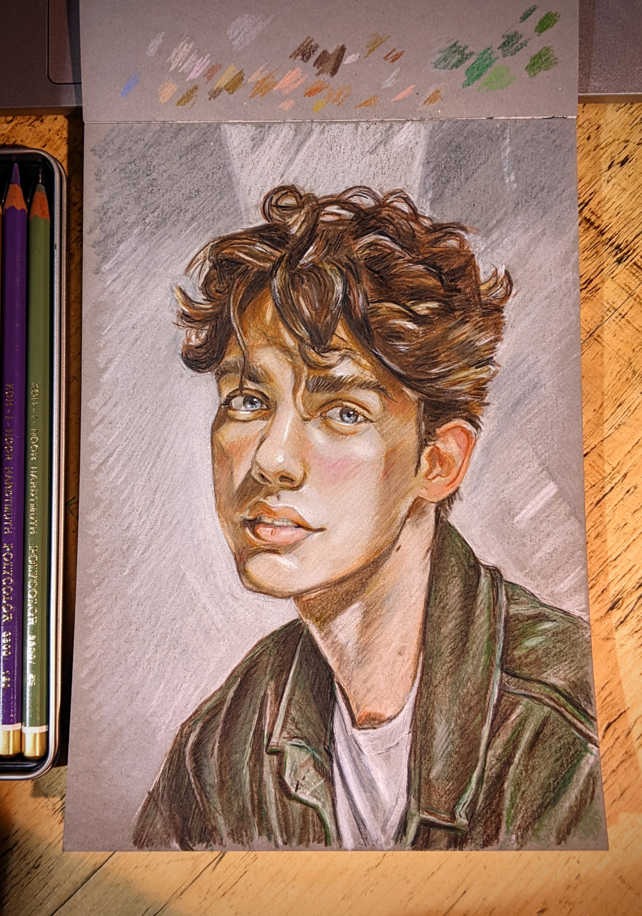 Drawn using Koh-i-Noor Hardtmuth PolyColour 24 portrait pencils, and Claire Fontaine Paint on Mixed Media / Multi Techniques Gris grey paper, A5.